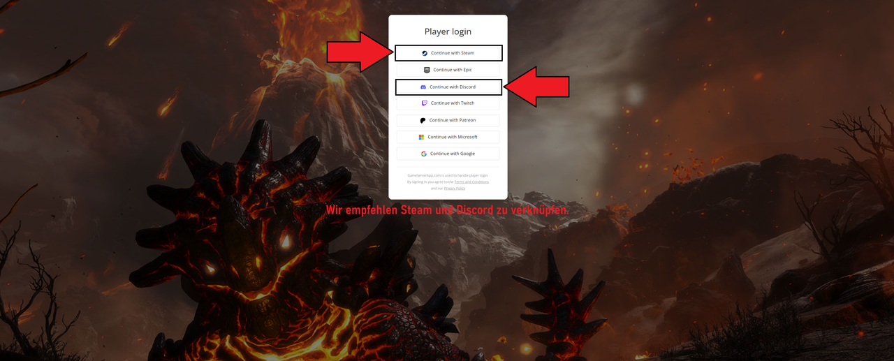 – Wähle deine Plattform für den Login aus. Wir empfehlen immer Discord und Steam, da ihr Steam für das Voting benötigt. Ihr könnt nach dem Login eine zweite oder mehr Plattformen mit der Website verknüpfen.