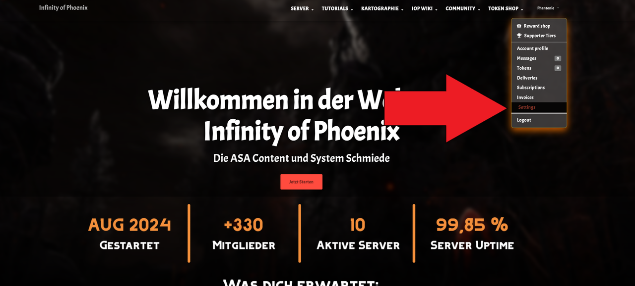 - Öffne die Settings/Einstellungen deines Spielerprofiles.